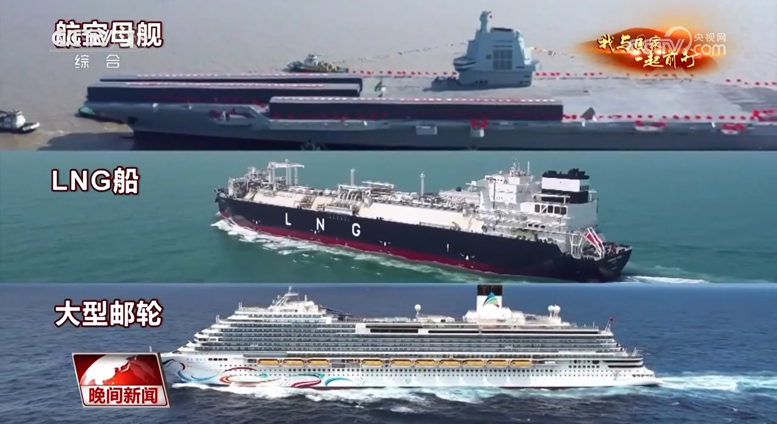 r中国船舶外高桥造船邮轮项目部副部长 韦胜圣:我们最先攻克的是LNG船。我们辽宁舰、山东舰的服役,证明我们也掌握了航空母舰建造的能力。我们感觉到明显是国家的综合能力发展到一定实力的时候,我们也是水到渠成,去能够完成这种大型邮轮的建造。